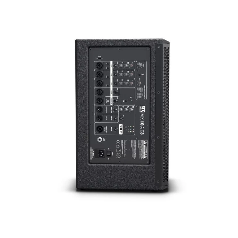 Возможно подключение широкого спектра источников входного сигнала, включая электромузыкальные инструменты, смартфоны, планшеты, MP3 и CD-плееры. Встроенный микшер оснащен 3 микрофонными каналами с 2-полосным эквалайзером и фантомным питанием 48 В. Выходная секция включает в себя 3-полосный мастер-эквалайзер для общей корректировки тона, 4-сегментный светодиодный индикатор и выходы XLR для монитора и сабвуфера. Кроме того, MIX 10 A G3 оснащен DSP с 16 пресетами цифровых эффектов, лимитером и системой защиты от перегрузки по току и короткого замыкания. Выход SpeakON позволяет подключать дополнительную пассивную систему MIX 10 G3. Прочный корпус изготовлен из фанеры с углом 50° для использования в качестве сценического монитора и «стаканом» под стойку с наклоном 0° или 5°. MIX 10 A G3 обеспечивает высокую производительность и универсальность применения в легком корпусе.