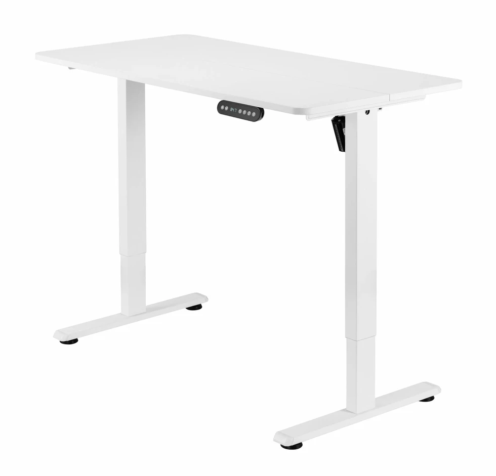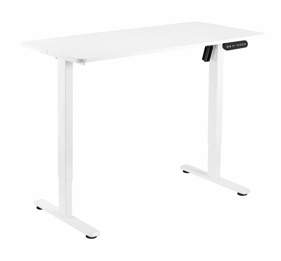 Стол с электрической регулировкой высоты. Подъемный вес 70 кг, Ширина 1200 мм, Глубина столешницы 600 мм, Регулировка высоты 730-1180 мм. Стол на 2х опорах. Пульт встроенный в столешницу с памятью 3х положений, экран с отображением текущей высоты.  Система защиты от зажима с регулируемой чуствительностью. Цвет- Белый/Черный.
