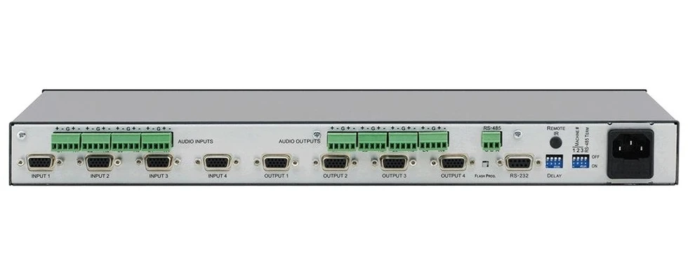 Матричный коммутатор 4х4 VGA 1600x1200 и балансного аудиостереосигнала (терм.блок), управление по RS-232, RS-485.
