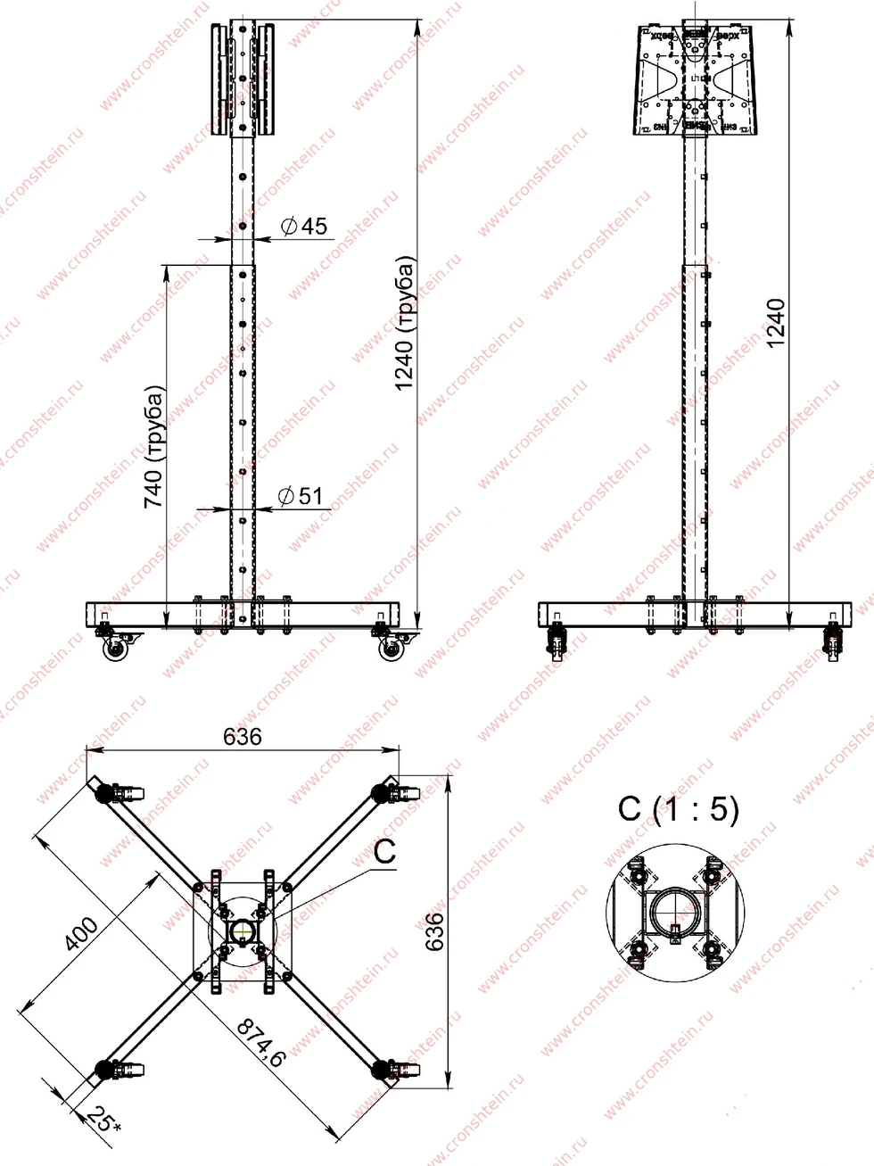 • Высота от пола до верхнего торца несущей трубы: до 1314 мм