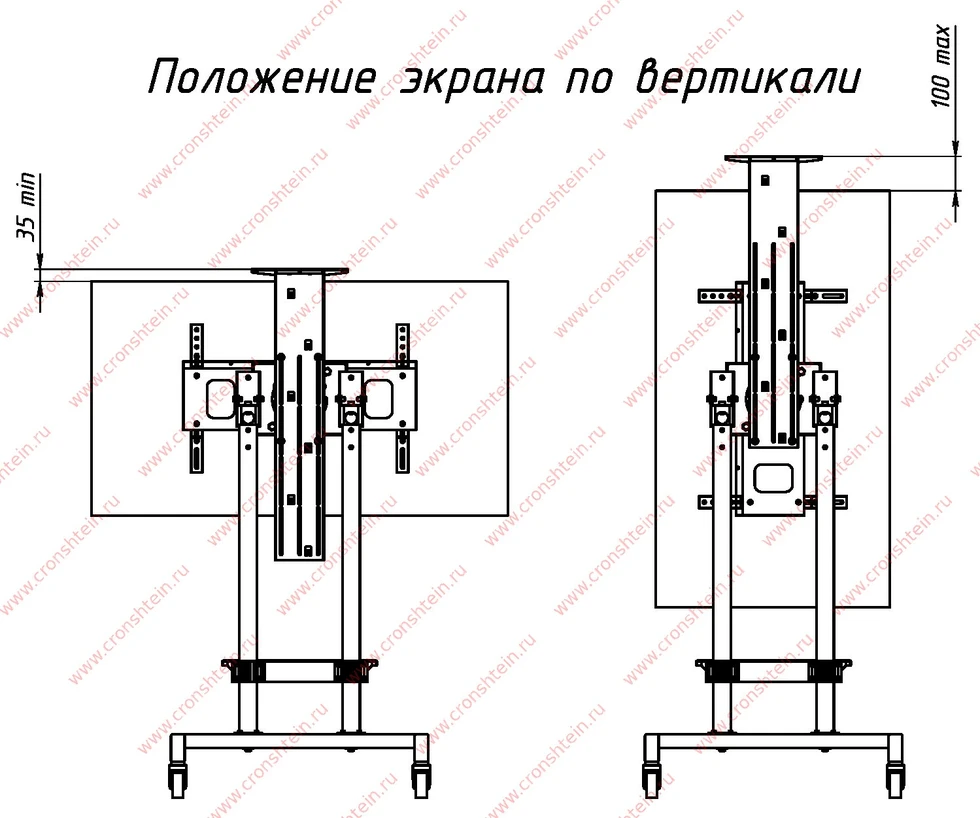• Стандарт крепежных отверстий VESA: мин. 100x100, макс. 600x400 мм.