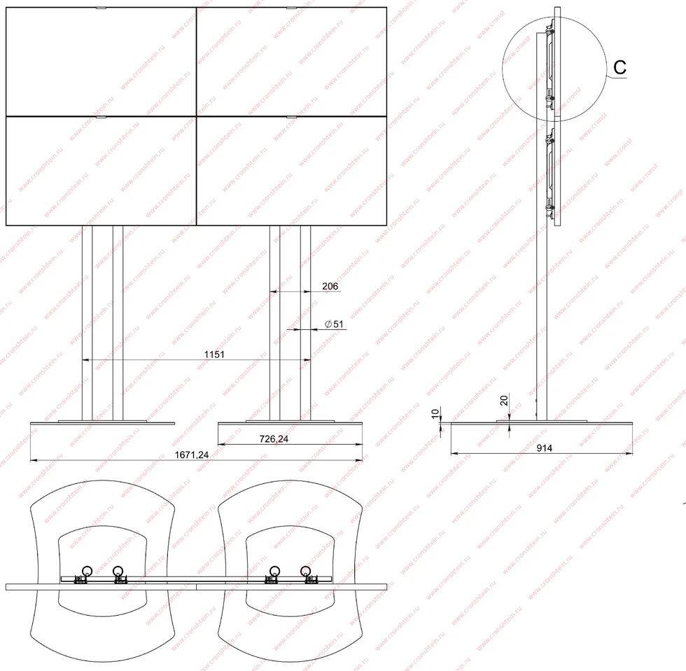 • Размеры: 1817х1837х914 мм (могут меняться в зависимости от диагонали видеопанели и расстояния от пола до нижнего края видеостены)