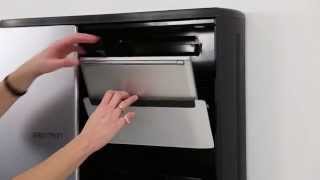 Настенная система для хранения, зарядки и синхронизации планшетов iPad, рассчитанная на 12 устройств. Включает в себя установленные 30-pin кабели. Прочная стальная дверь с 6 точечным замком, который закрывается на ключ, обеспечивает сохранность устройств.