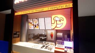 • 5 дисплеев висят под углом к посетителю в одной плоскости и видит все предложения без искажений.