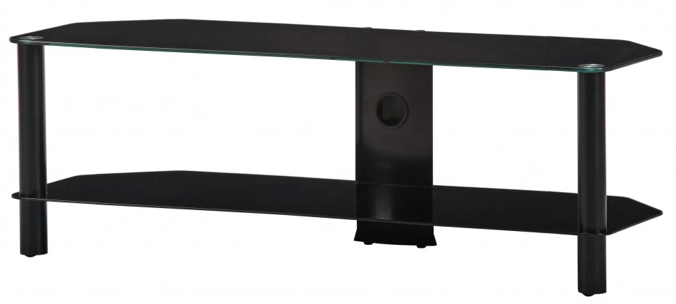 2 полки, max нагрузка 50 кг, 410х1300х400мм (ВхШхГ), черное стекло / серебристые ножки (на фото)