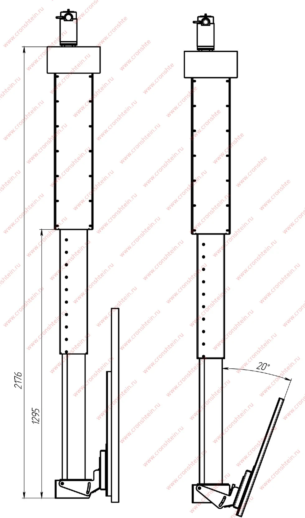 Стандарт крепления vesa: 200x200-600x400 мм. Размеры крепёжной пластины к потолку: 192х 317 мм. Размеры необходимого пространства ниши для монтажа: 292х317х100 мм. + 20 мм по краям для возможности монтажа. Размеры Колонны лифта в собранном состоянии: 210х110х700 мм. Расстояние до тв от лифта: а) 154 мм. при угле наклона 30 градусов. б) 70 мм При угле наклона 15 градусов Управление: Кнопка сухого контакта, Пульт ДУ с возможностью обучения пульта от телевизора, Через смартфон по WiFi и приложение на iOS, ANDROID (опция) Срок изготовления: 1 мес. Срок изготовления по тз заказчика(опция): от 2 месяцев