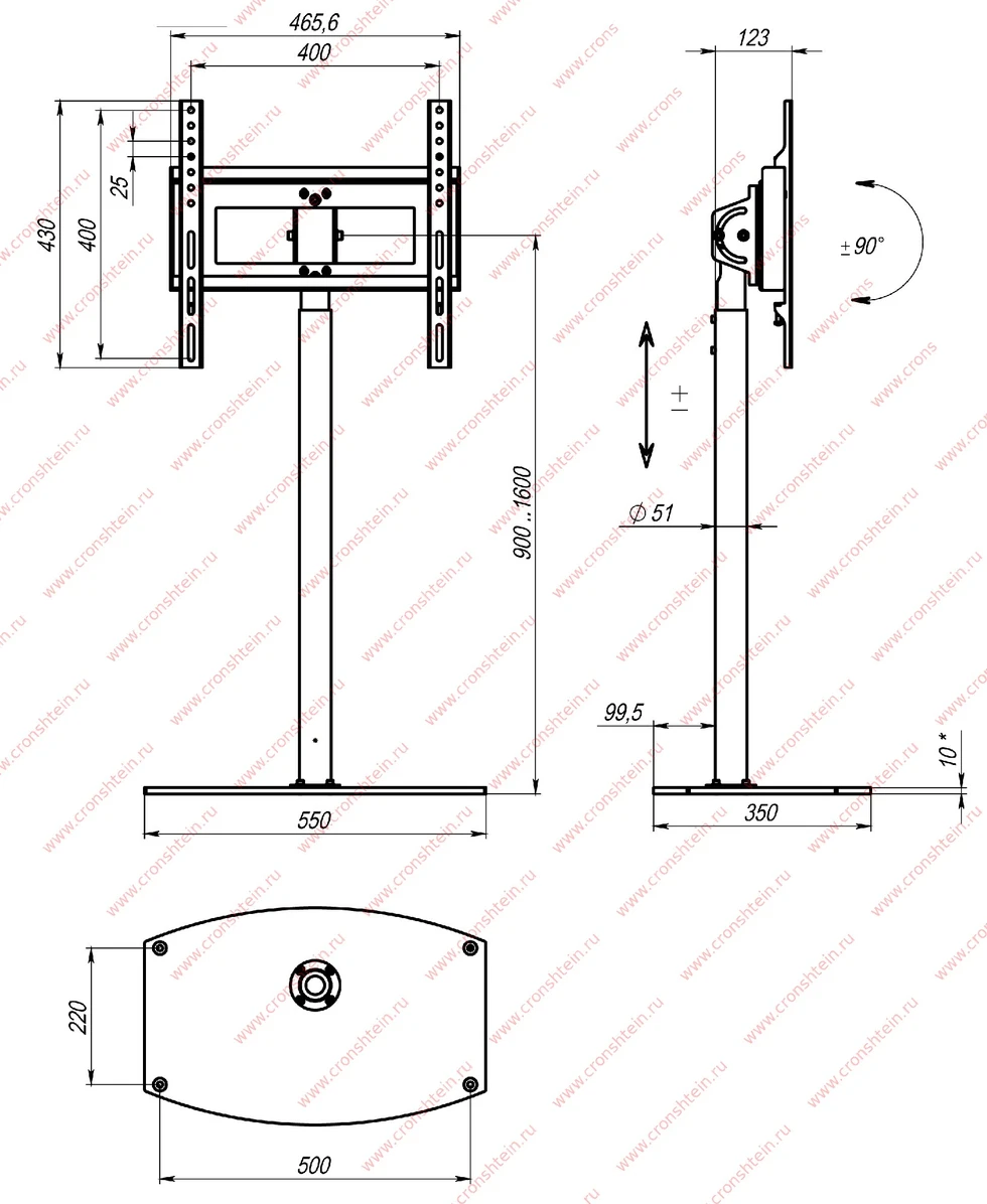 • Стандарт крепежных отверстий VESA: мин. 100x100, макс. 400x400 мм.