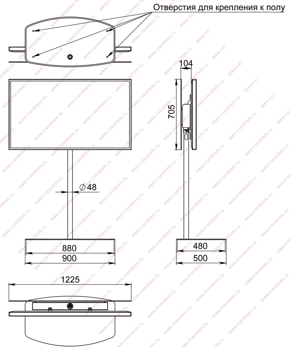 • Высота от пола до верхнего торца несущей трубы: до 1600 мм