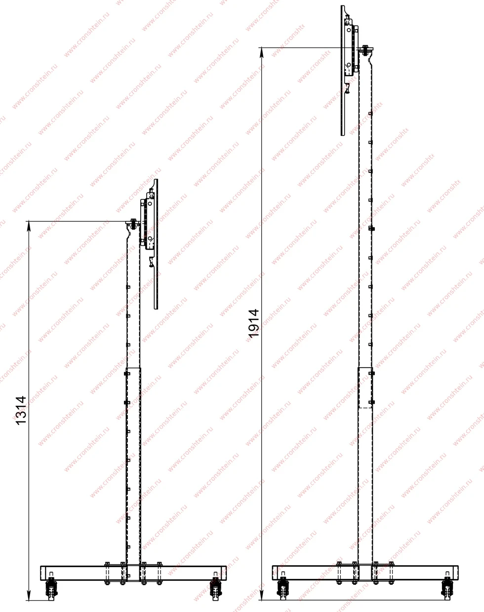 • Высота от пола до верхнего торца несущей трубы: до 1314 мм
