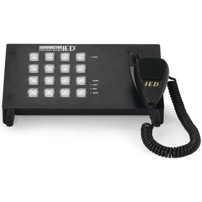16-кнопочная программируемая станция системы оповещения GLOBALCOM 5400 с DSP-процессором и ручным микрофоном, управление по IP, вход/выход аналогового аудио.