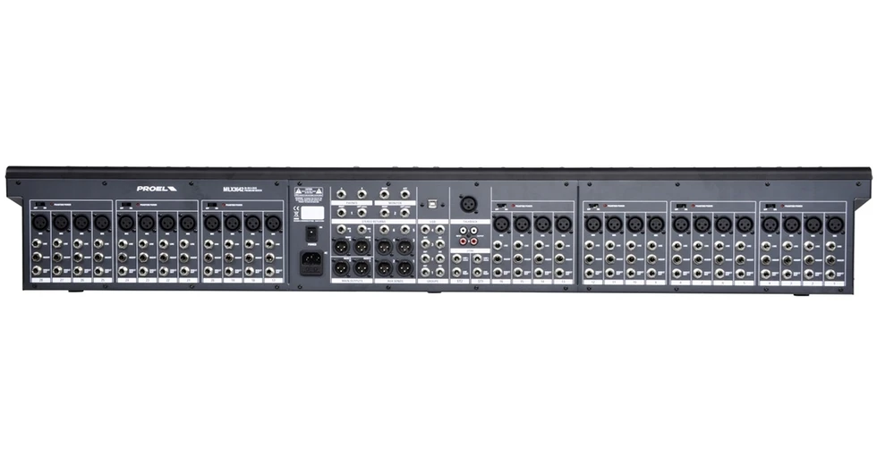 36-канальный микшерный пульт, 6 шин. Вх: 28 Mic/Line, 4 стереовхода, USB вход/выход. DSP-процессор с 256-ю эффектами.