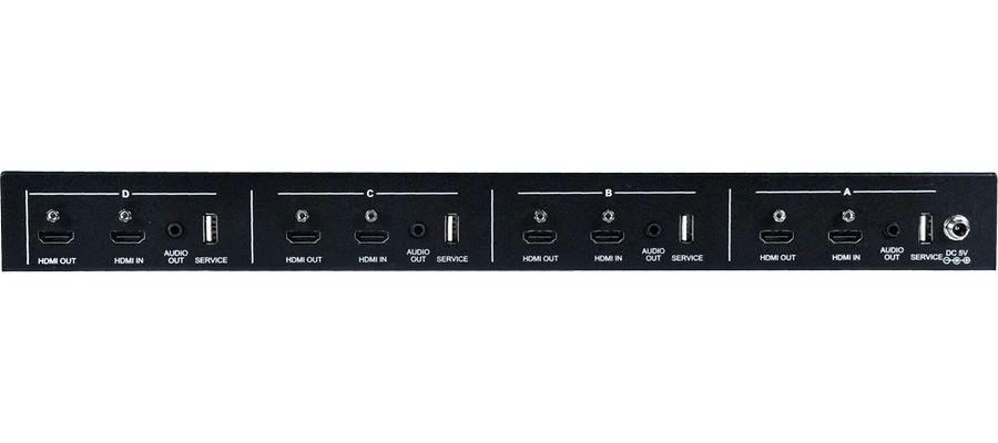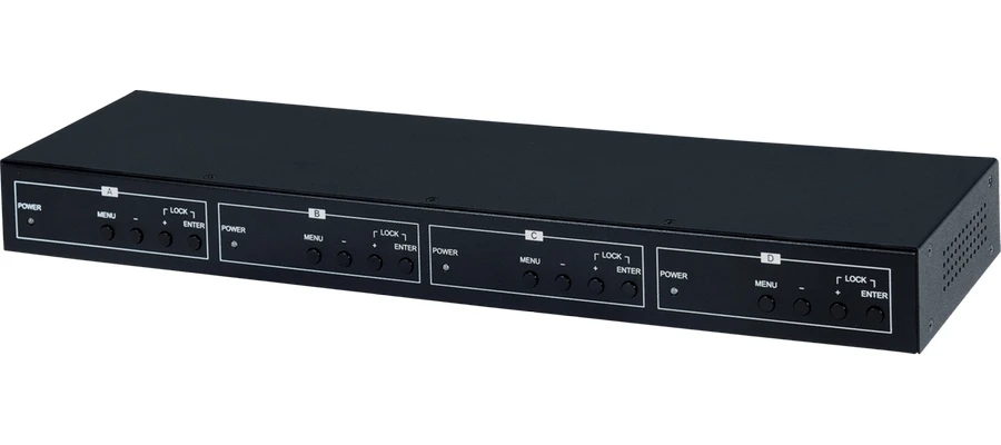 4-канальный масштабатор HDMI 4096?2160/60 (4:4:4, 8 бит) с HDCP 1.4 (2.2), EDID, с деэмбеддером стереоаудио (miniJack 3,5 мм). Полоса пропускания 600 МГц.