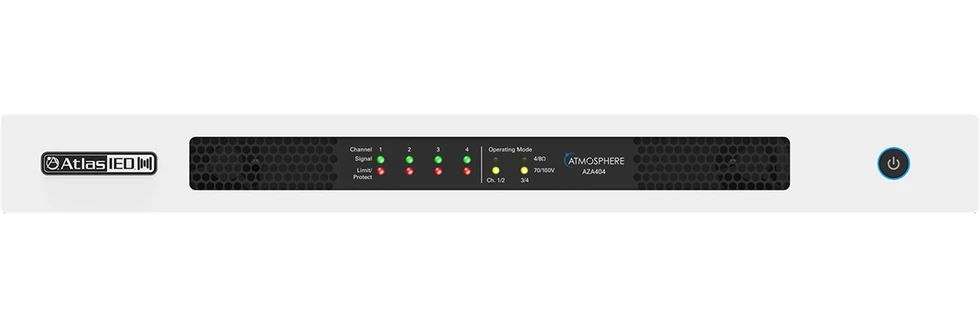4-канальный усилитель мощности серии ATMOSPHERE 4х50 Вт / 4 Ом, 4х75 Вт / 8 Ом, 4х100 Вт / 70/100 В. Управление по IP (web-интерфейс).