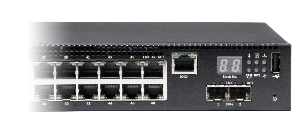 48-портовый управляемый коммутатор, RJ45 10/100/1000 Мб. Расширяется в стэк до 12-ти коммутаторов.