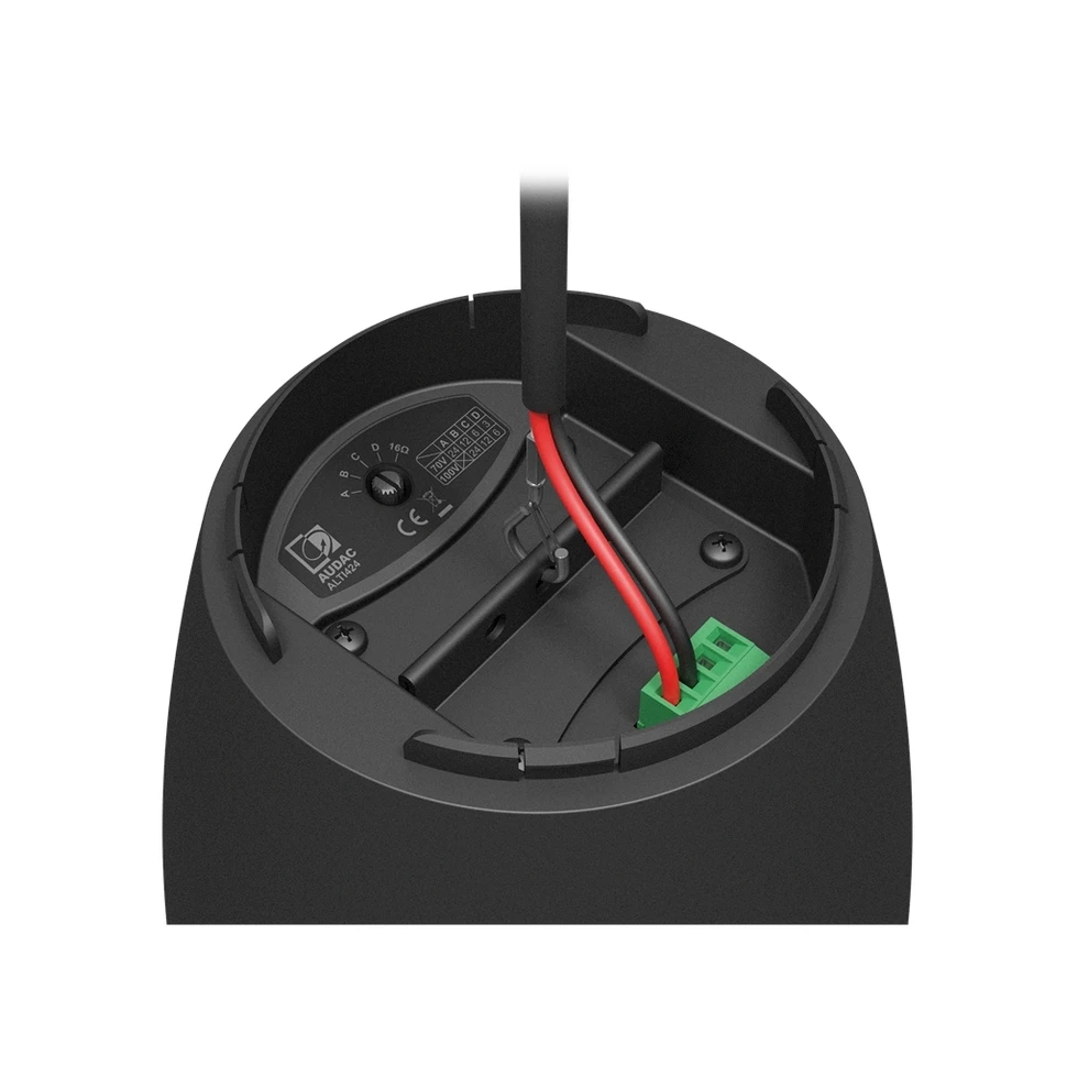 6'' подвесная двухполосная акустическая система 60–120 Вт – 16 Ом. Отводы 100 В: 7.5, 15, 30, 60 Вт. 61,5 Гц – 20 кГц (?10 дБ). Чувств. 83 дБ. Угол раскрытия: 115°. Цвет черный.