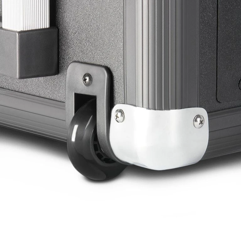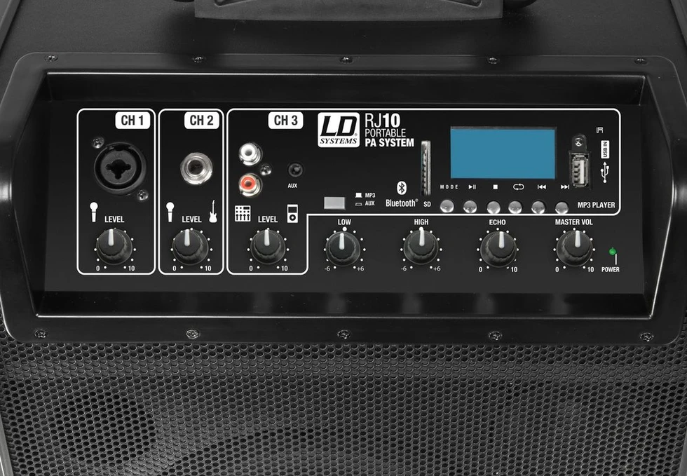 Активная акустическая система LD Systems Roadjack 10 – мобильная звуковая станция, оснащенная колесами и телескопической ручкой. Работает от аккумуляторного блока, который выдерживает до 20 часов беспрерывной работы. Активная двухполосная система Roadjack 10 с частотным диапазоном от 90 Гц до 18 кГц, пиковой мощностью 100 Вт, оснащена микшером с 3 входными каналами с индивидуальными регуляторами громкости, 2-полосным эквалайзером, реверберацией и мастер-громкостью. Встроенный проигрыватель обеспечивает потоковое воспроизведение звука при помощи Bluetooth, поддерживает также SD-карту и USB-накопитель. Меню проигрывателя включает в себя выбор языка и пресеты эквалайзера для нескольких жанров для мгновенной настройки звука. Roadjack 10 также имеет усиленные уголки для защиты корпуса, отверстие для крепления на стойке и удобный инфракрасный пульт дистанционного управления.