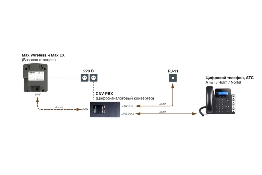 AT&T – цифро-аналоговый конвертер для подключения к AT&T PBX.