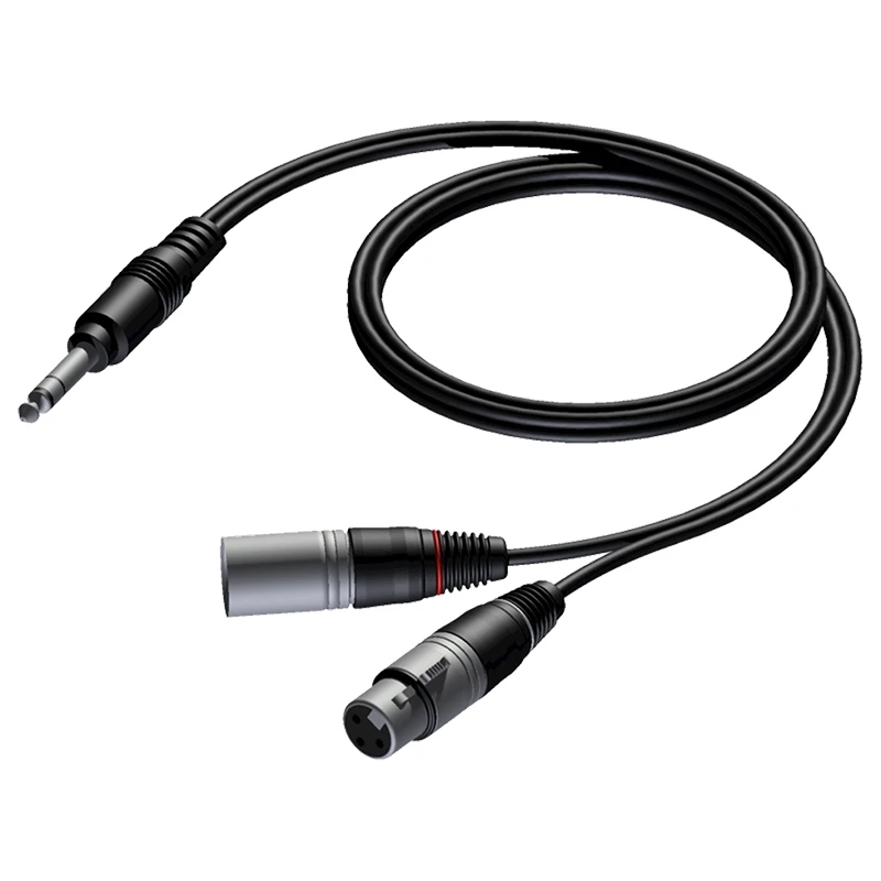 Аудиокабель 2х XLR 3-pin (вилка, розетка) – Jack 6,3 мм стерео (вилка).