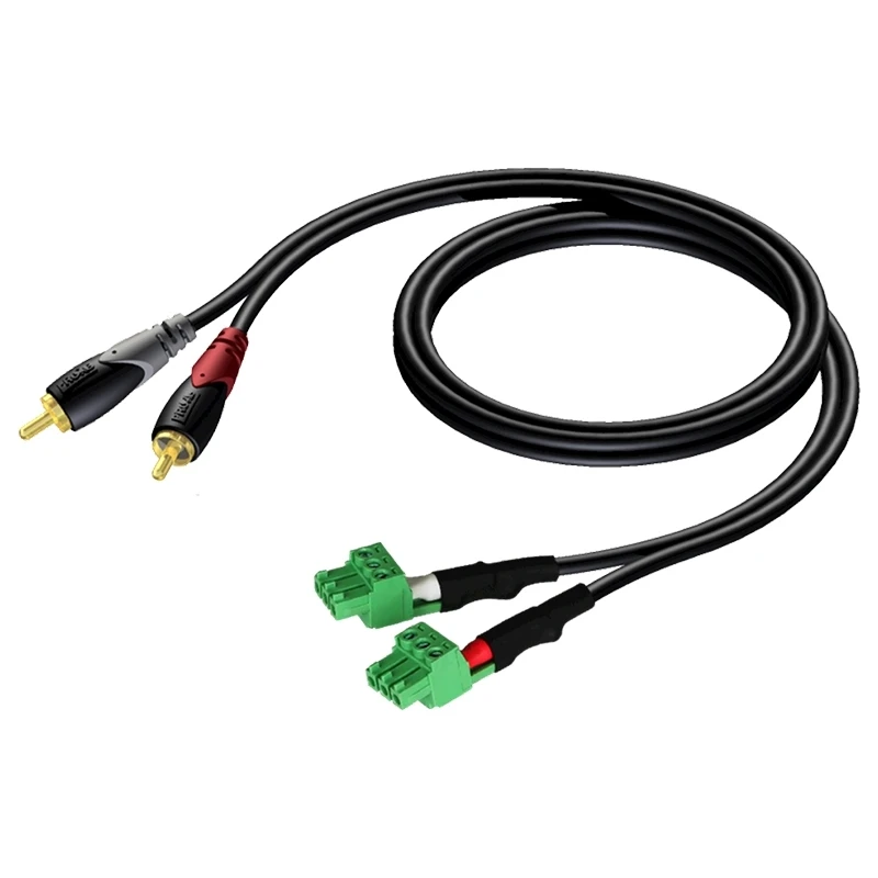 Аудиокабель 2хRCA (вилка) – 2х клеммные колодки, 3-pin, 3,81 мм.