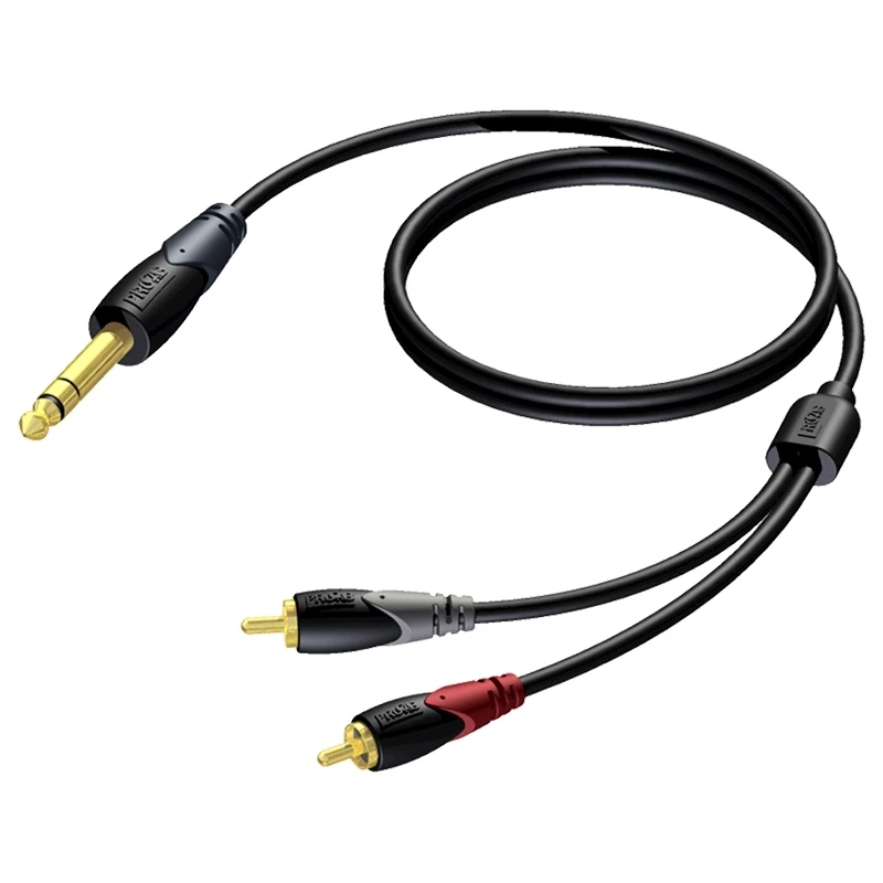 Аудиокабель Jack 6,3 мм стерео (вилка) – 2хRCA (вилка).