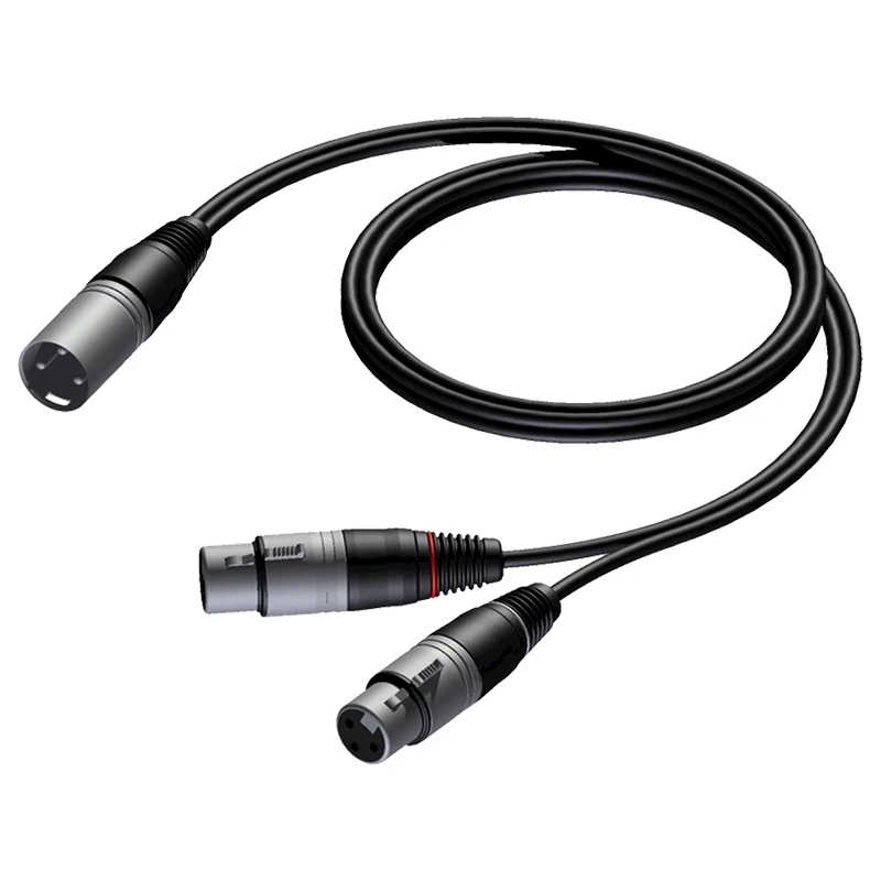 Аудиокабель XLR 3-pin (вилка) – 2х XLR 3-pin (розетка).