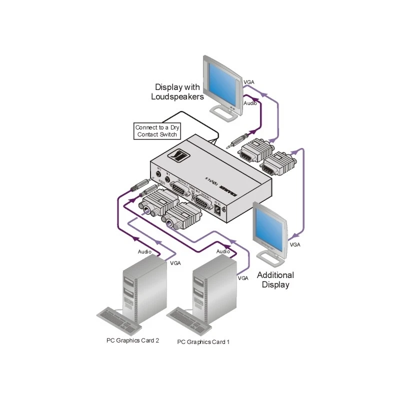 Автоматический коммутатор 2x1 сигналов VGA и звуковых стереосигналов, 300 МГц c технологией KR-ISP™.