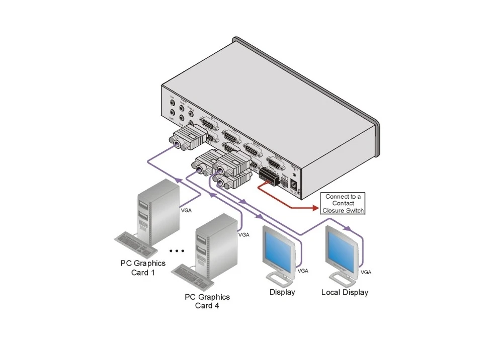 Автоматический коммутатор 4x1 сигналов VGA и звуковых стереосигналов, 300 МГц.