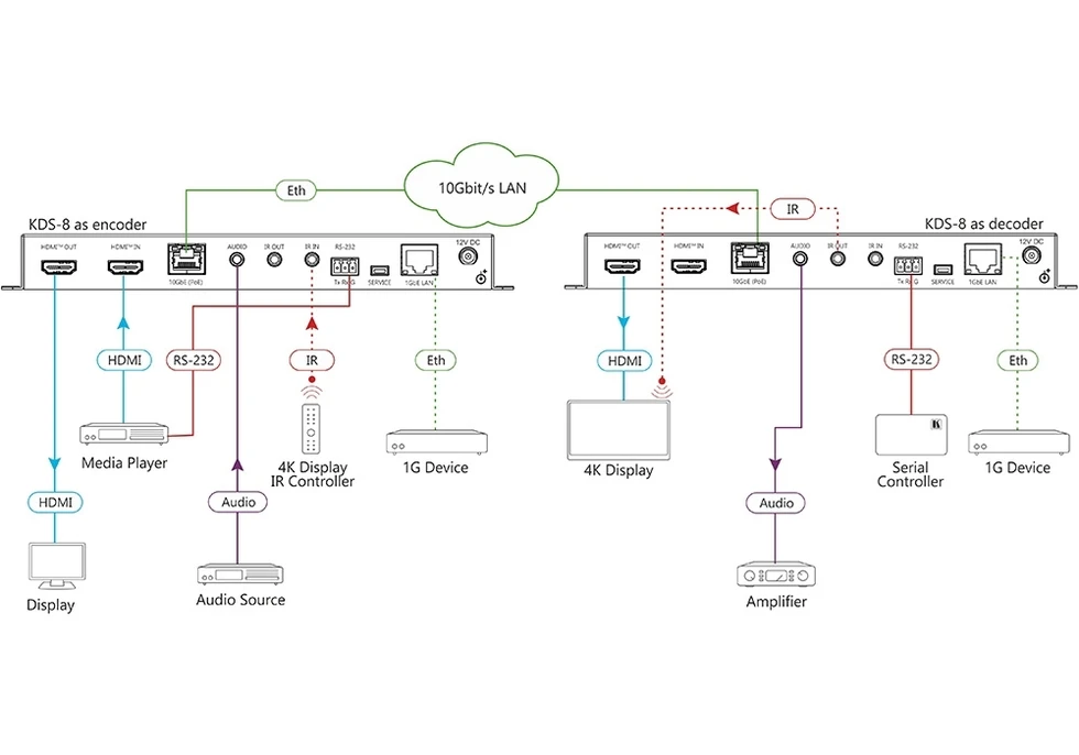 Бесподрывный кодер / декодер и передатчик/приемник в / из сети Ethernet видео, аудио, RS-232, ИК; поддержка 4K/60 Гц (4:4:4) HDCP 2.