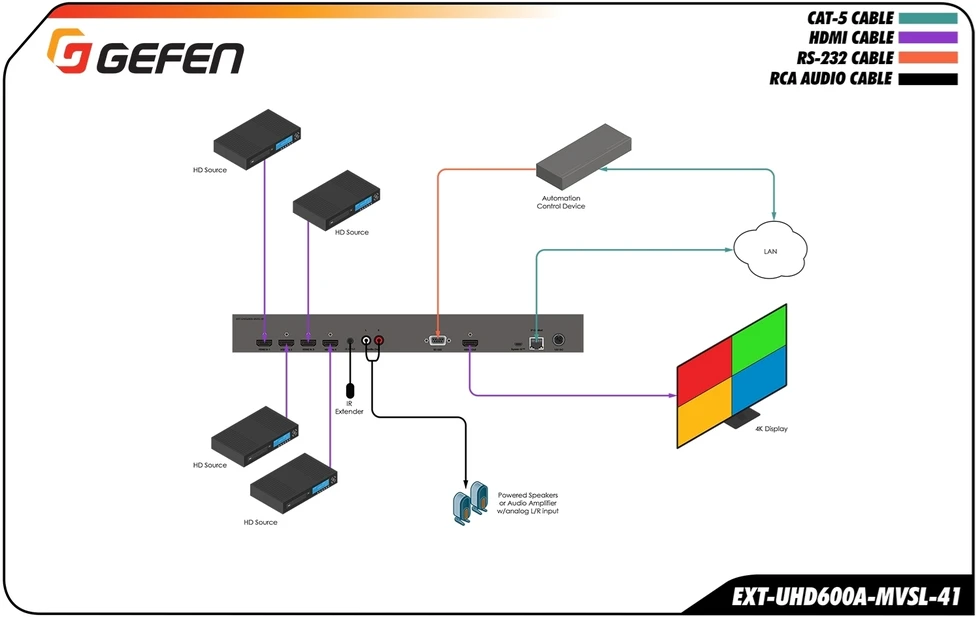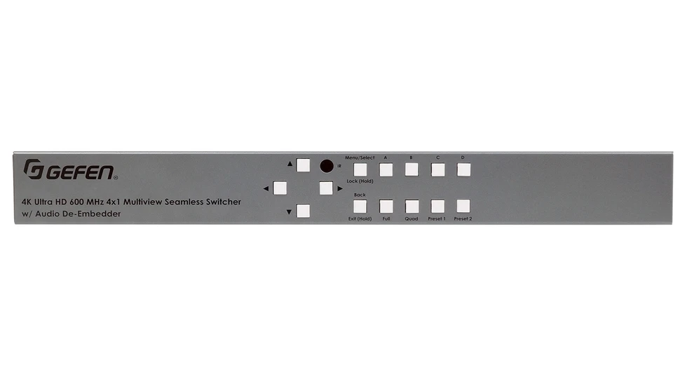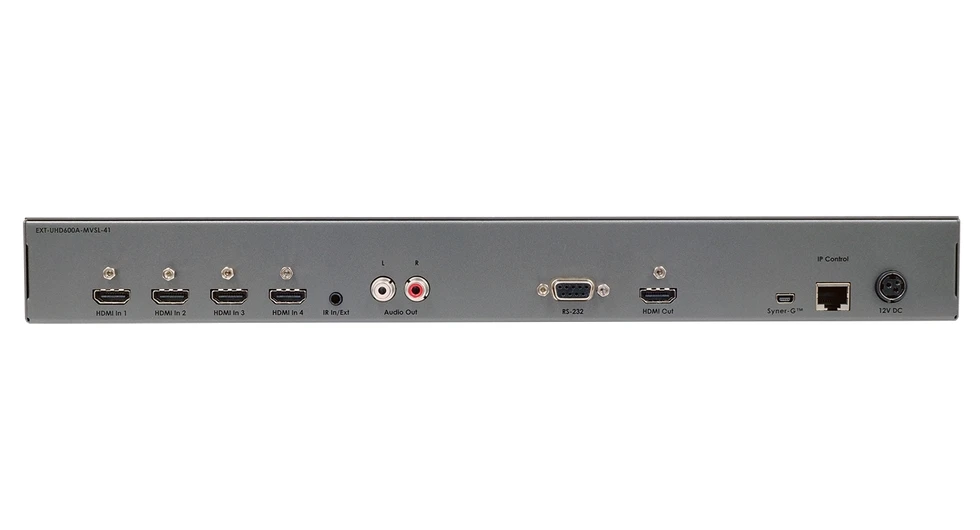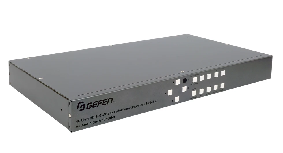 Бесподрывный коммутатор / мультивьювер 4x1 сигналов HDMI 1080p/60 c HDCP в сигнал HDMI 4K/60 (YUV 4:4:4), независимая коммутация аудио, управление по ИК, RS-232 и IP, корпус для монтажа в стойку (1U).