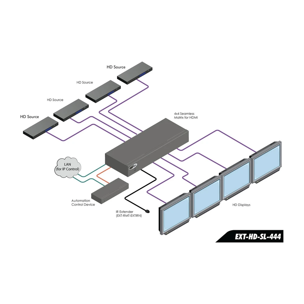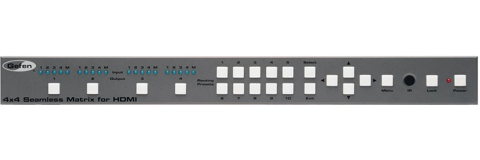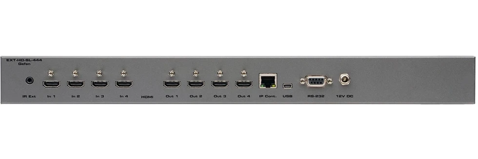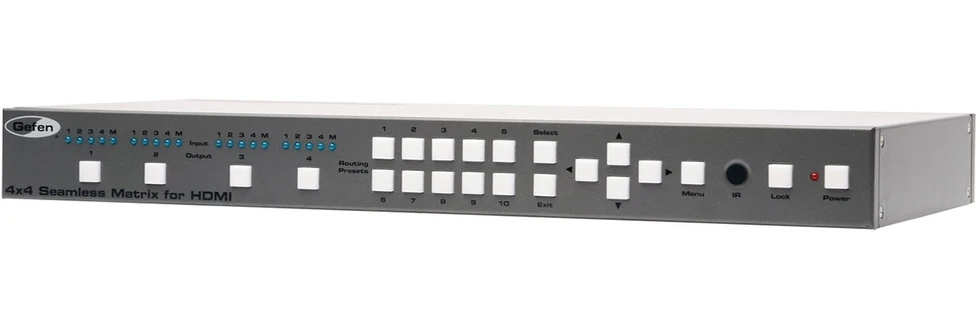 Бесподрывный матричный коммутатор-масштабатор 4x4 сигналов HDMI 1080p (1920х1200) c HDCP и EDID, управление по ИК, RS-232 и IP, корпус для установки в стойку (1U).