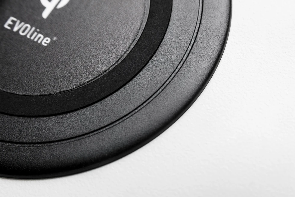 Зарядное устройство EVOline® Qi-Charger устанавливается либо в качестве вставки для стандартных отверстий диаметром 80 мм, либо под столом или рабочей поверхностью - так, чтобы зарядная станция не была незаметна. Заряжаемое устройство просто помещается в соответствующее место. Для удобство можно наклеить специальную наклейку в месте расположения зарядки.