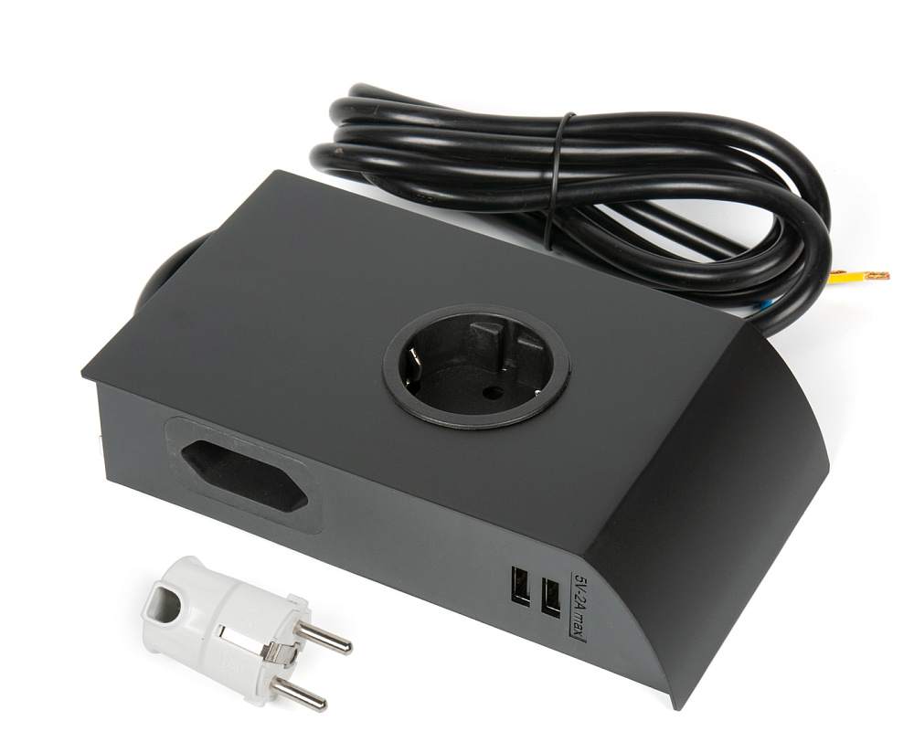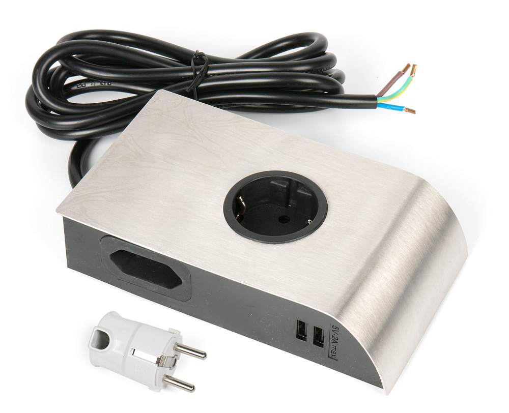 BORN Накладной блок: 1 розетка 220B Schuko + 2 розетки 220В тип С без заземления + 2 USB-зарядки Type A SFL BORN хром (арт. SCA9610)