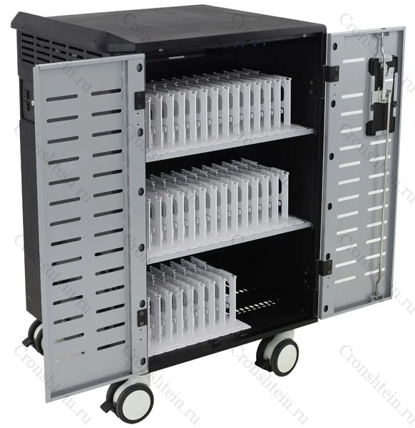 Универсальная тележка для транспортировки, хранения и зарядки любых 40 планшетов и ноутбуков до 15,6". Вместимость: 40 ячеек шириной 28мм или 30 ячеек шириной 35мм. Максимальные размеры устройства 43.4 x 28.4 см (включая корпус и штур).
