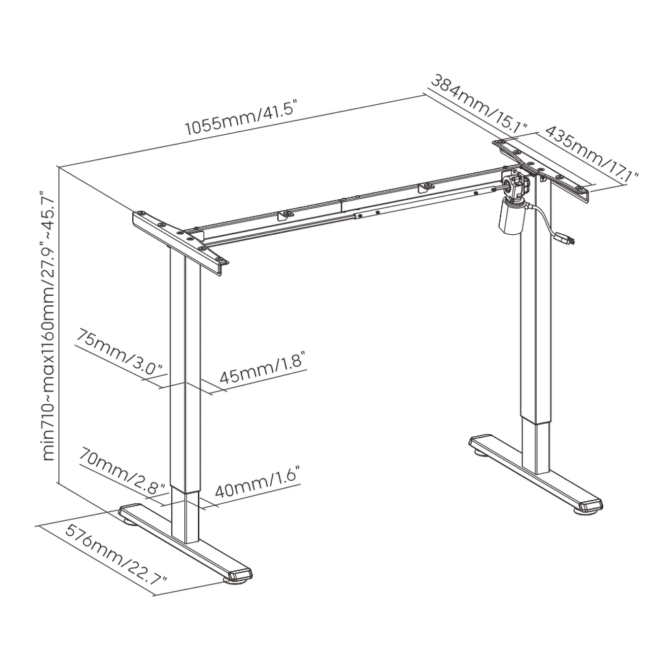 Стол с электрической регулировкой высоты. Подъемный вес 70 кг, Ширина 1200 мм, Глубина столешницы 600 мм, Регулировка высоты 730-1180 мм. Стол на 2х опорах. Пульт встроенный в столешницу с памятью 3х положений, экран с отображением текущей высоты.  Система защиты от зажима с регулируемой чуствительностью. Цвет- Белый/Черный.