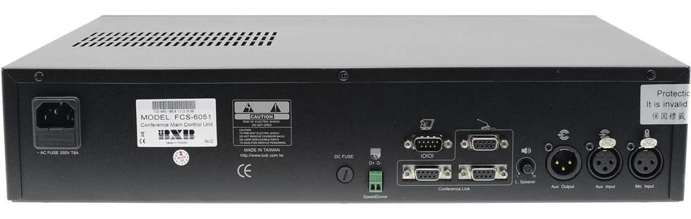 Центральный блок с функцией подавления обратной акустической связи. Возможность управления до 10 пультов председателя и 500 пультов делегата.
