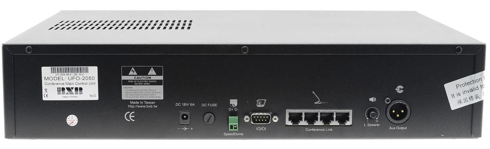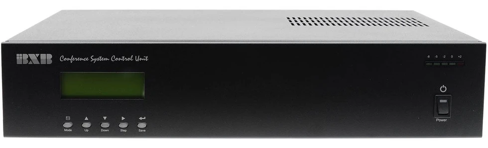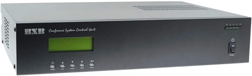 Центральный блок. Возможность управления до 10 пультов председателя и 500 пультов делегата. Имеет LCD-дисплей, можно подключить высокоскоростную купольную камеру и управления программным обеспечением. Подключение по RJ45.