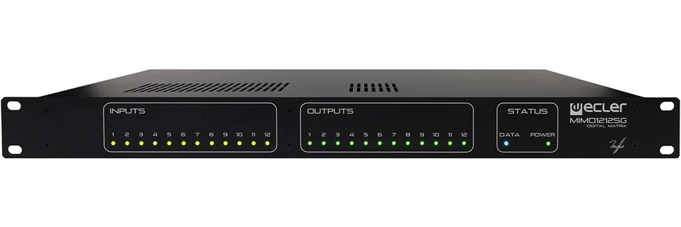 Цифровая матрица аудиосигналов, DSP-аудиопроцессор серии MIMO с фиксированной архитектурой, 12х12 входов/выходов Phoenix, 8 логических входов GPI, эхоподавление с 4 входов. Управление с панелей WPm, по IP и RS-232, ПО EclerNet.