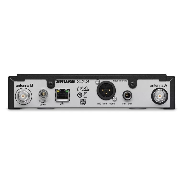 Цифровой одноканальный приёмник  SLXD4, 518-562 МГц, 1 аналоговый выход XLR, 1 аналоговый выход TRS, 2 РЧ-входа 50 Ом, 1 порт Ethernet