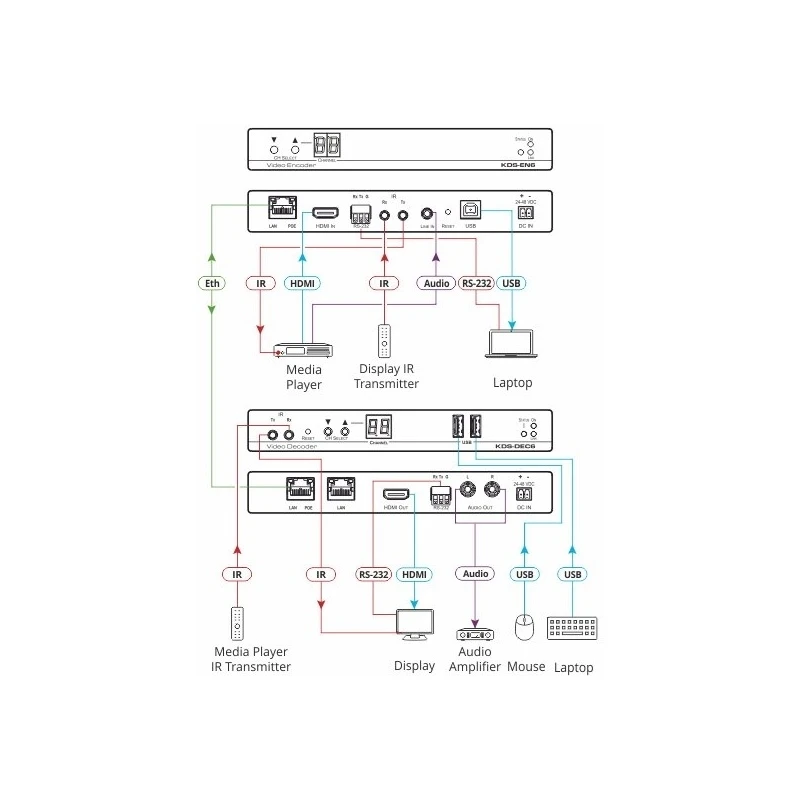 Декодер из сети Ethernet 10/100/1000BaseT видео HD 4K60 (4:2:0) с HDCP 2.2, аудио, RS-232, ИК, USB; работает с KDS-EN6.