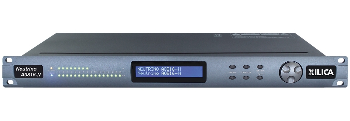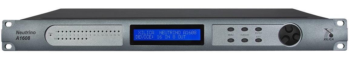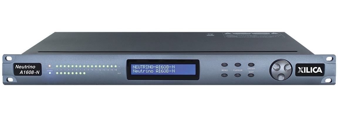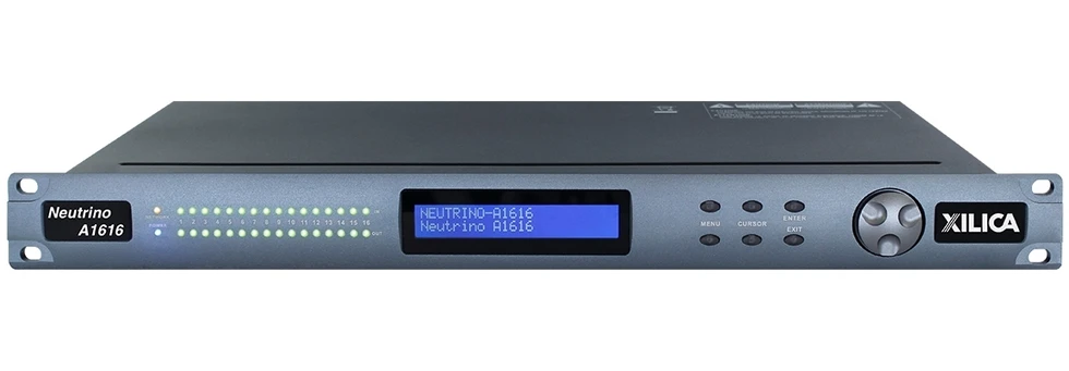 DSP-аудиопроцессор (40 бит, плавающая точка) серии Neutrino с открытой архитектурой, 16х16 входов/выходов Phoenix, 4 логических входа, 2 релейных выхода, управление по IP.