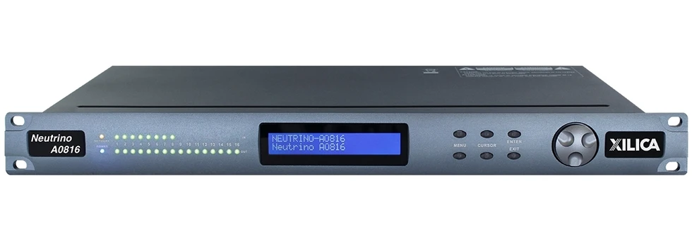 DSP-аудиопроцессор (40 бит, плавающая точка) серии Neutrino с открытой архитектурой, 8х16 входов/выходов Phoenix, 4 логических входа, 2 релейных выхода, управление по IP.