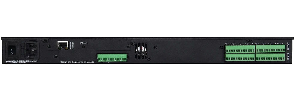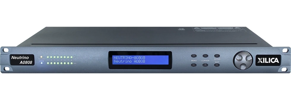 DSP-аудиопроцессор (40 бит, плавающая точка) серии Neutrino с открытой архитектурой, 8х8 входов/выходов Phoenix, 4 логических входа, 2 релейных выхода, управление по IP.