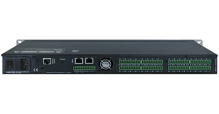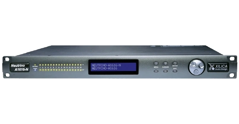 DSP-аудиопроцессор (40 бит, плавающая точка) серии Neutrino с открытой архитектурой и Dante, 16х16 входов/выходов Phoenix, 4 логических входа, 2 релейных выхода, управление по IP.