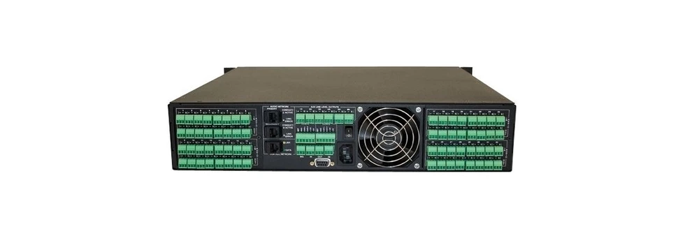 DSP аудиопроцессор с технологией CobraNet, балансные 32 входов/32 выходов для системы GLOBALCOM. Контроль и управление – 2хRJ45. Монтаж в стойку. Высота 2U.