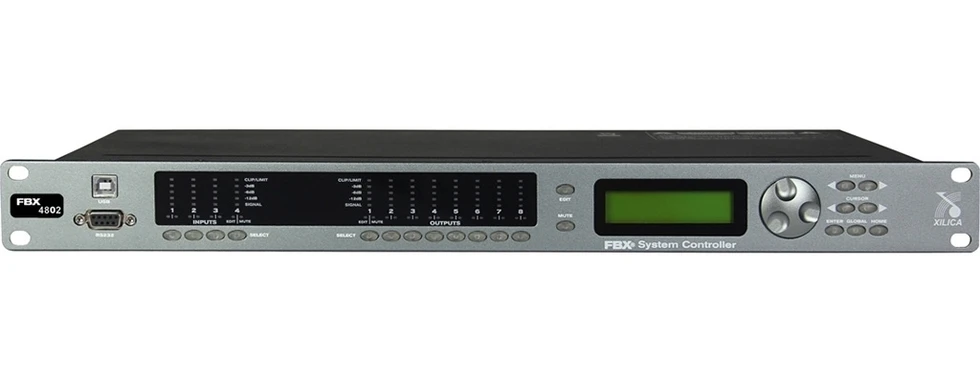 DSP-аудиопроцессор серии FBX c фиксированной архитектурой, 4 линейных входа, 8 линейных выходов с подавителем обратной связи.