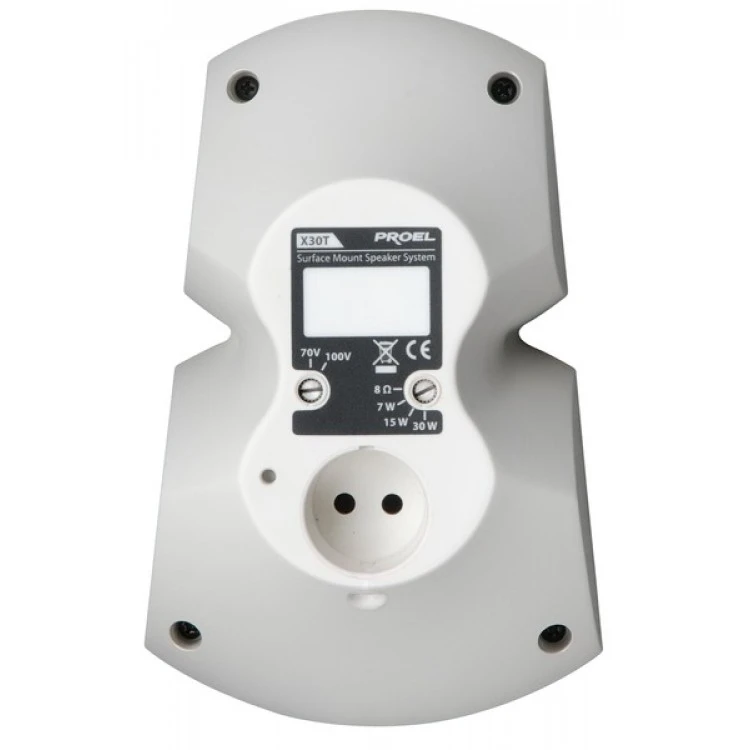Двухполосная настенная акустическая система 3'', 30 Вт – 100 В, 30 Вт – 8 Ом. Отводы 70/100 В: 30, 15, 8 Вт. 100 Гц – 20 кГц (-10 дБ). Чувств. 87 дБ. Раскрытие 150°. Поворотный кронштейн по горизонтали и вертикали 150°. IP55. Цвет белый.