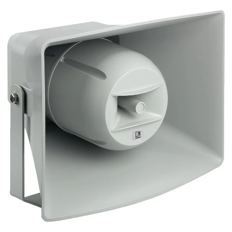 Двухполосный 1'' + 6,5'' рупорный громкоговоритель 60–120 Вт / 70 и 100 В. Отводы: 7.5, 15, 30, 60 Вт. 100 Гц – 16 кГц (±3 дБ), угол раскрытия 100x60°. Чувств. 99 дБ. IP66. Кронштейн в комплекте. Цвет серый.