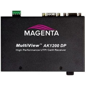 Двухпортовый приемник AK1200DP-SAP сигналов видео, стереоаудио и RS-232 из витой пары (до 183 м), технология AkuComp II для компенсации задержки сигналов по витой паре.