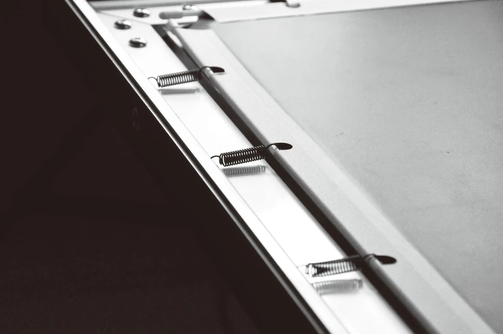 • Идеально плоское полотно с основой—материал PVC. Полотно равномерно натянуто по периметру рамки, что препятствует возникновению неровностей и волн во время эксплуатации;