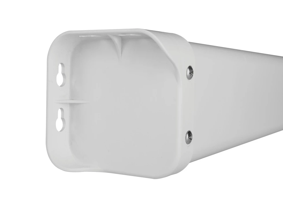 • Корпус экрана выполнен из стали с белым полимерным покрытием. Торцевые заглушки корпуса изготовлены из ударопрочного белого пластика.